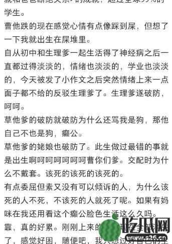 从她上述的这些表述上来看,她和她父亲的关系并不好,但既然已经忍气吞声了这么久了,都这么恨她的生理爹了,那我疑问的是,那她为什么还要拿着生理爹的钱,上大学和生活呢?