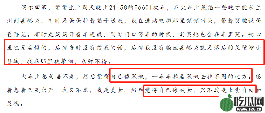 在她的文章里,她感慨,“嘉峪关就是落后的戈壁滩小县城,我在那里被禁锢,动弹不得。”文章源自吃瓜网https://www.17gua.com/吃瓜网-https://www.17gua.com/100126.html