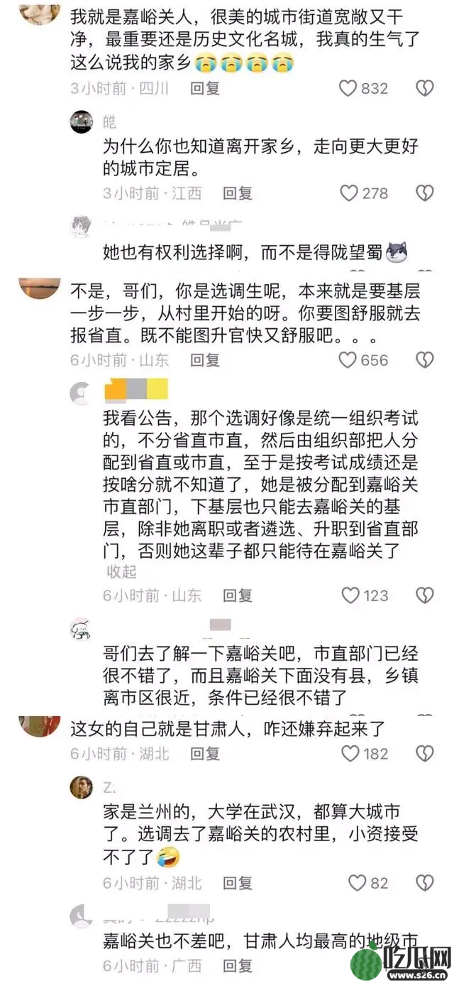 文章发表之后,不少人表示,选调生最后是按照的成绩来选择岗位,可能考试时她因自己的失误导致成绩并不理想,所以最后才会被兰州较远一些的嘉峪关市录用。
