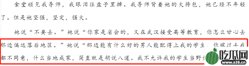 而除了顾学生的吐槽,她还透露,她的导师对她去嘉峪关的事情也强烈反对:“那边能有什么好的男人能配得上我的学生”“我不允许我的学生当野妇”