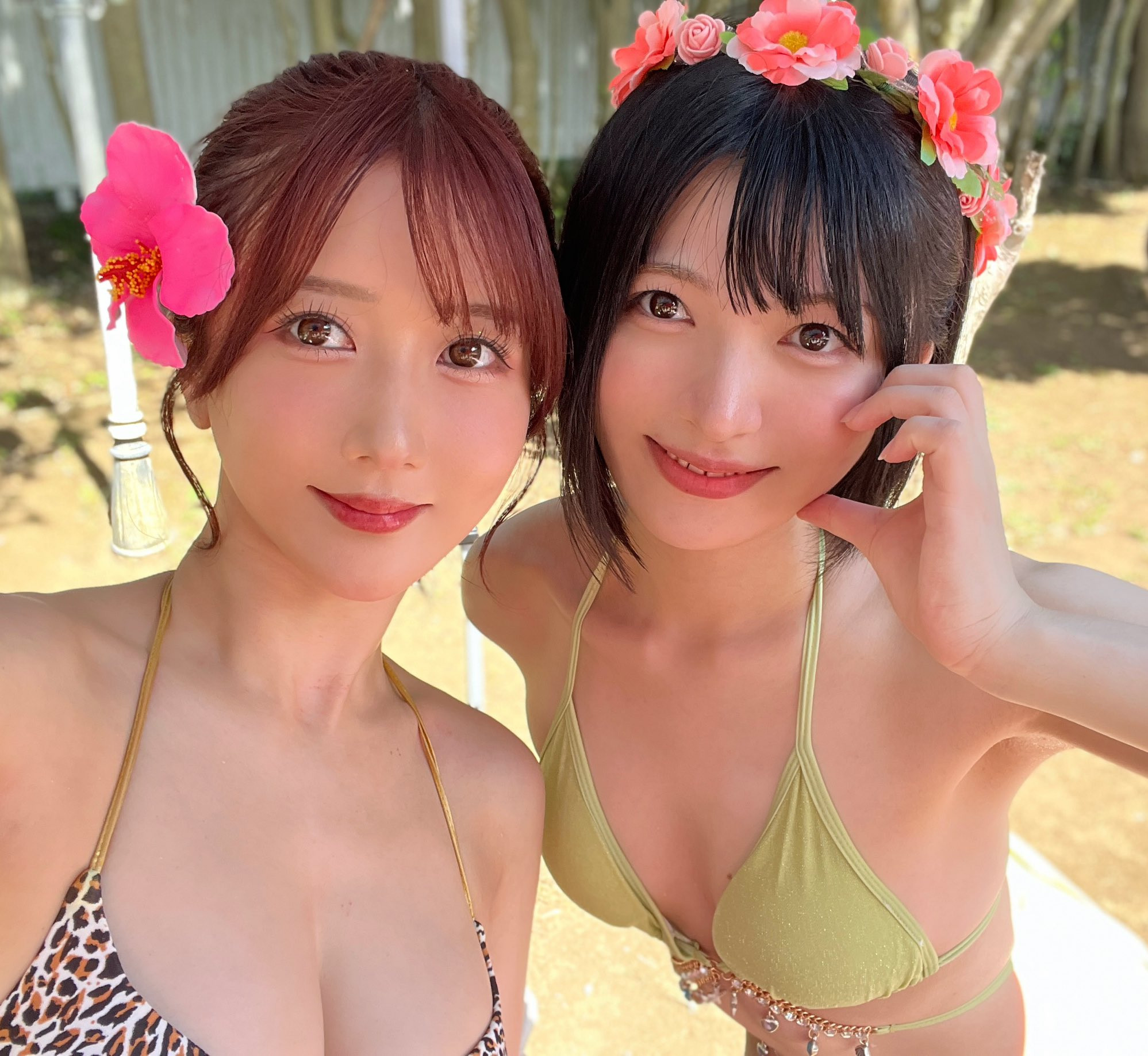 一连两篇,有穿着泳装也有穿着学生服的模样发文,重点是她很明显地在拍共演ー请大家看看,那张照片被我圈起来的那位女优是不是香水じゅん(香水纯)?