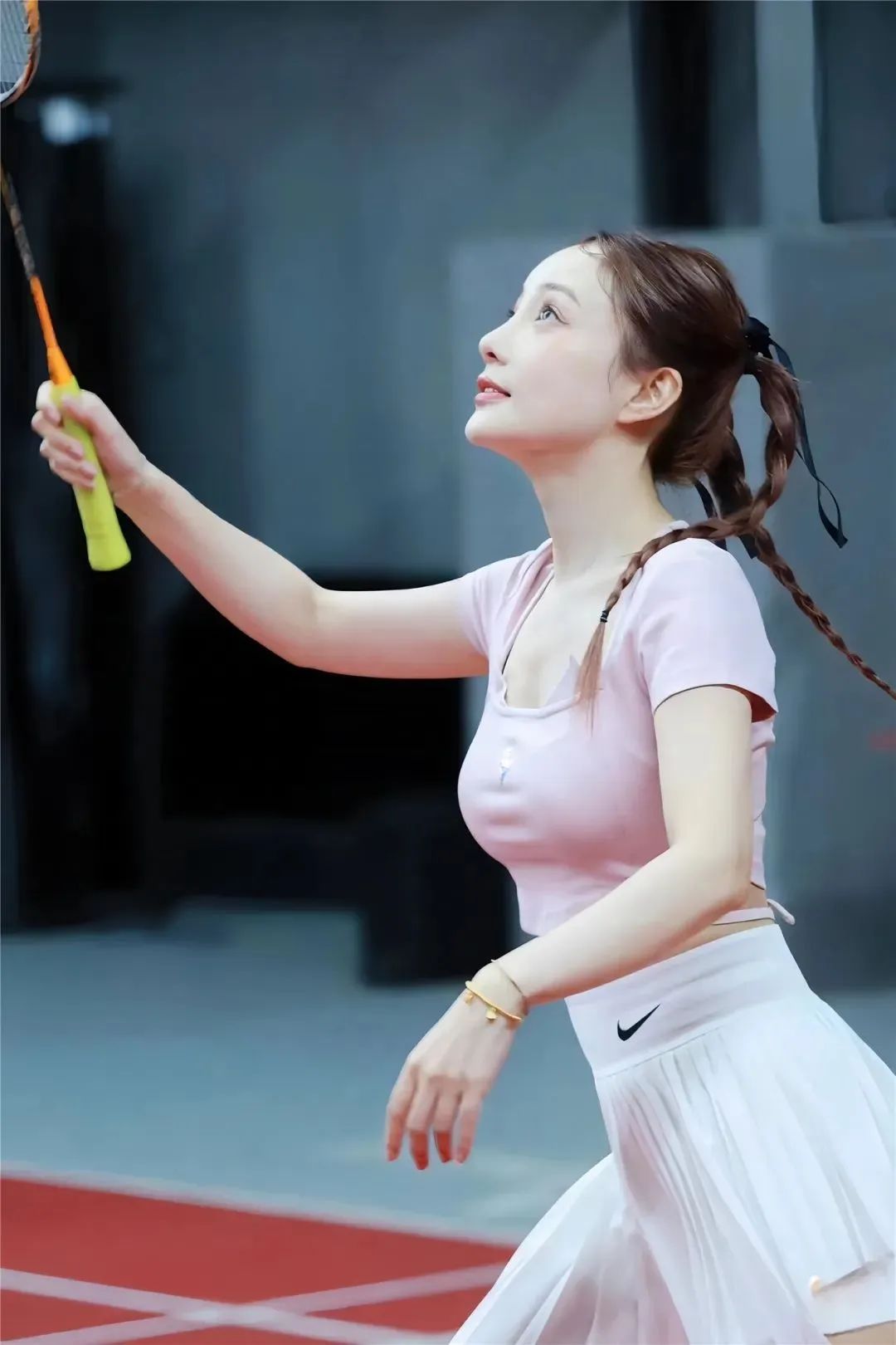 看李小璐打羽毛球的动作、姿势,能看得出她是有一点专业的,并不只是摆拍做做样子,而是真的有在用心锻炼的。