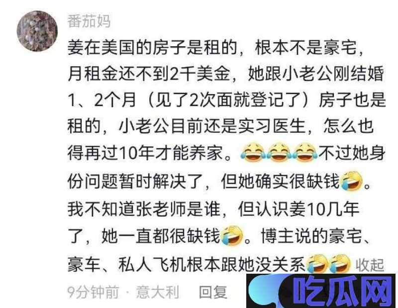 说真的,如果真的有证据,请她直接上报给相关部门,又或是直接发到网络上公开,要锤就锤死,告到他坐牢。可明明有这样的机会,却总是动动嘴,自己躲在美国和外国老公恩恩爱爱,讲一些有的没的,这不是把广大吃瓜网友当傻子看吗?是不是有点侮辱普通网友的智商了?还以为现在靠嘴污蔑,就可以毁掉一个人的清白?@小慧君