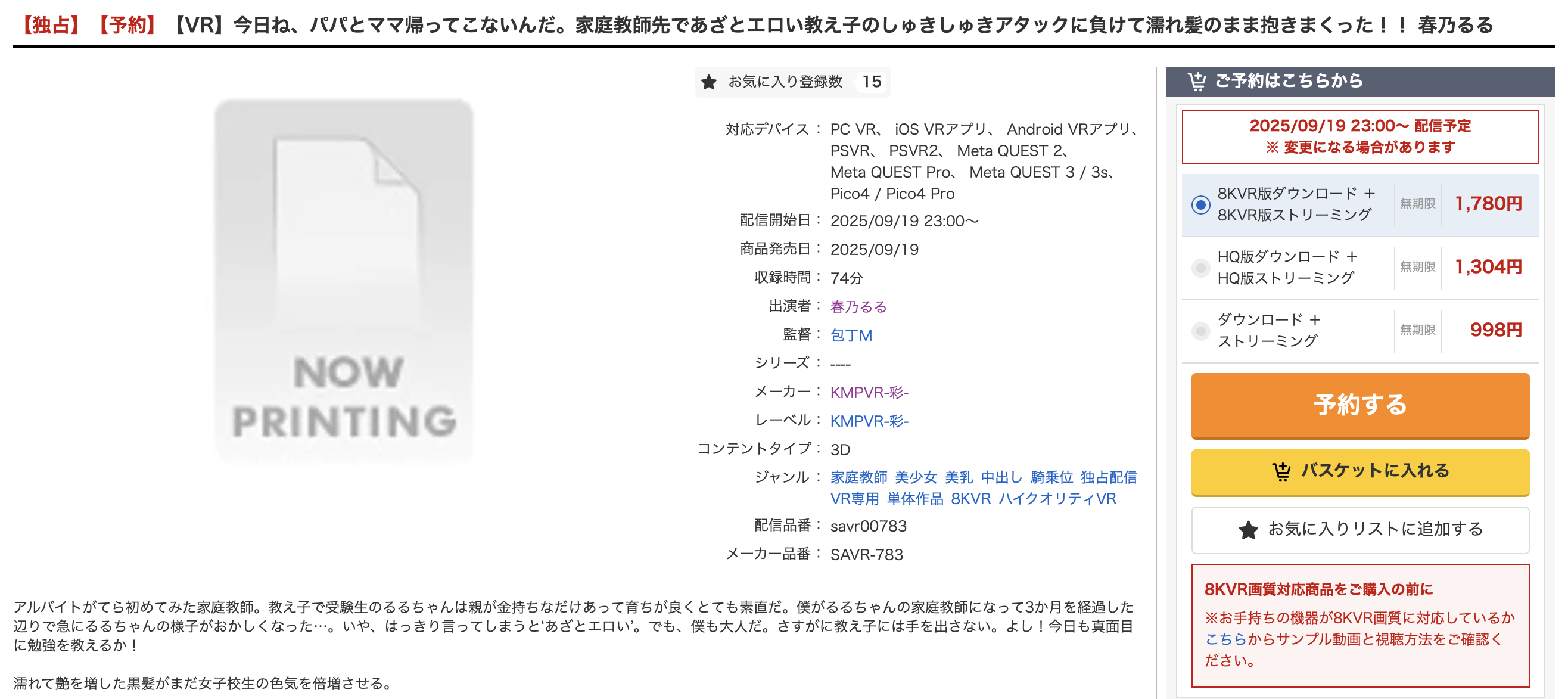 作品是由片商KMPVR-彩-发行的「【VR】今日ね、パパとママ帰ってこないんだ。家庭教師先であざとエロい教え子のしゅきしゅきアタックに負けて濡れ髪のまま抱きまくった!!」,这是一支VR片,9月19日发售;由于她自己已经在社群上说了,所以不用多问,她就是没有拿到专属合约,要游走于各片商拼发片量的企画单体女优(キカタン):文章源自吃瓜网https://www.17gua.com/吃瓜网-https://www.17gua.com/120526.html