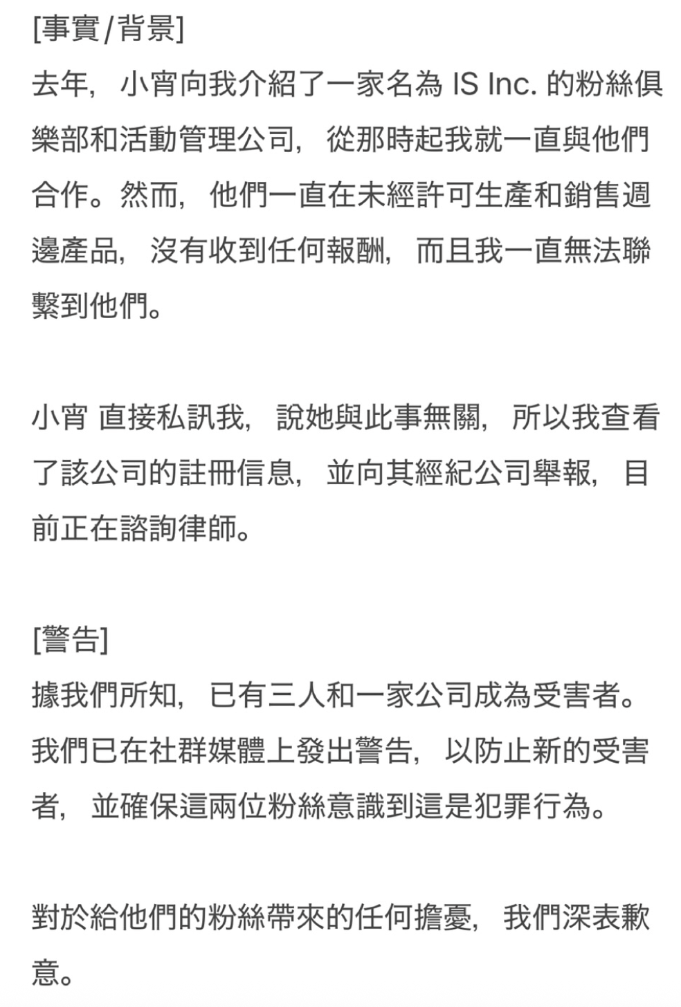 意思就是ami开设粉丝团是做白工了,然后她在这篇声明也证明小宵刻意隐瞒夫妻关系介绍她与其配偶开设的公司合作导致被欺骗,而且「还有很多人上当」〜