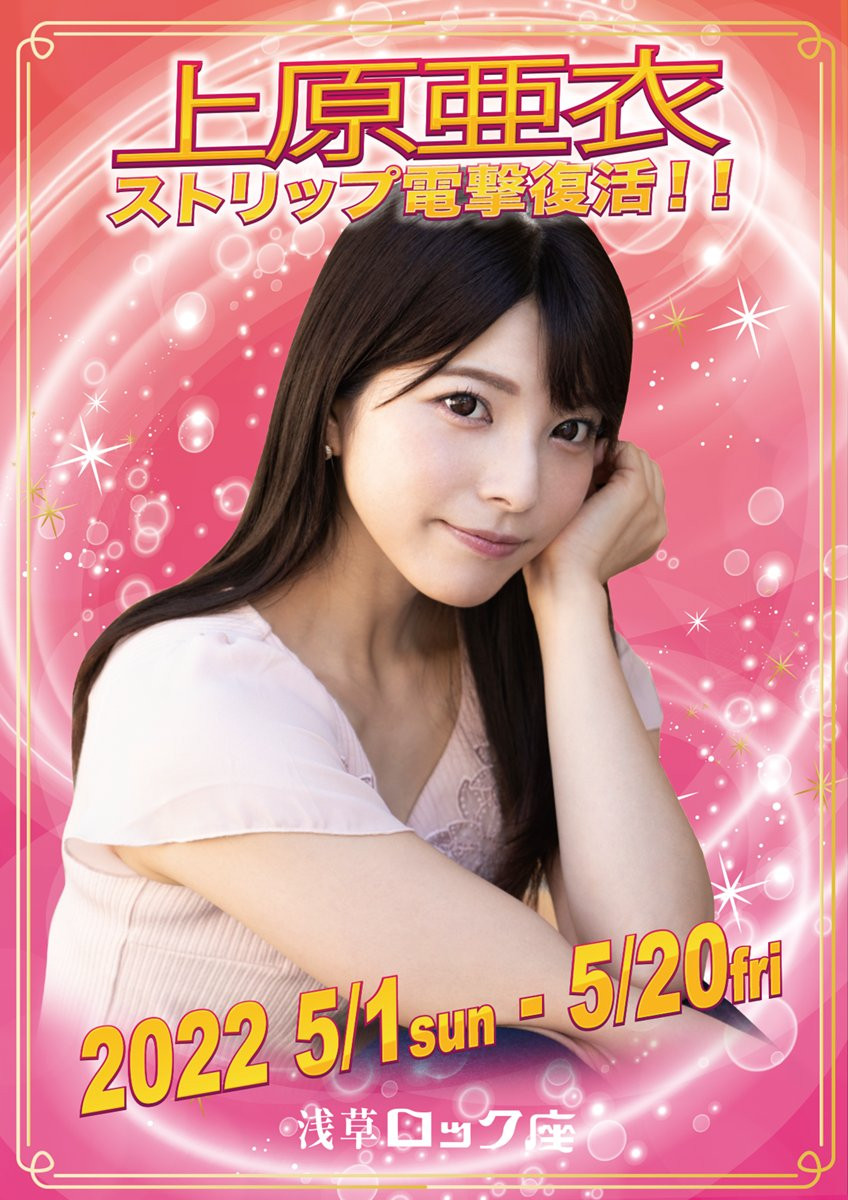 但也不是没有好消息啦,曾经君临天下的发片机器上原亜衣(上原亚衣)也和高橋しょう子(高桥圣子)一样不过愚人节而是很认真地重大发表ー5月1日到20日,她要回到脱衣舞秀场惹〜文章源自吃瓜网https://www.17gua.com/吃瓜网-https://www.17gua.com/24597.html