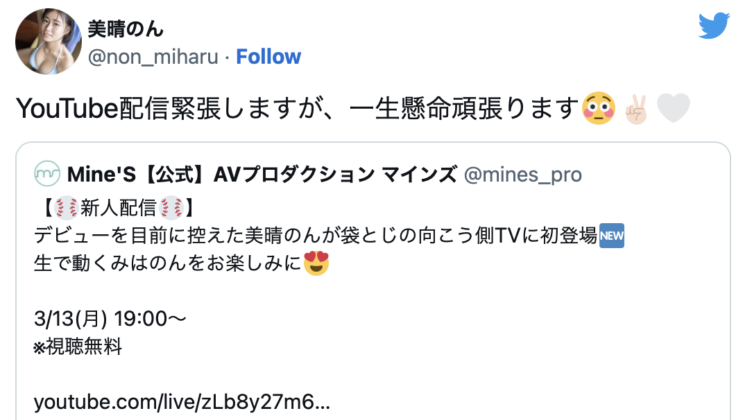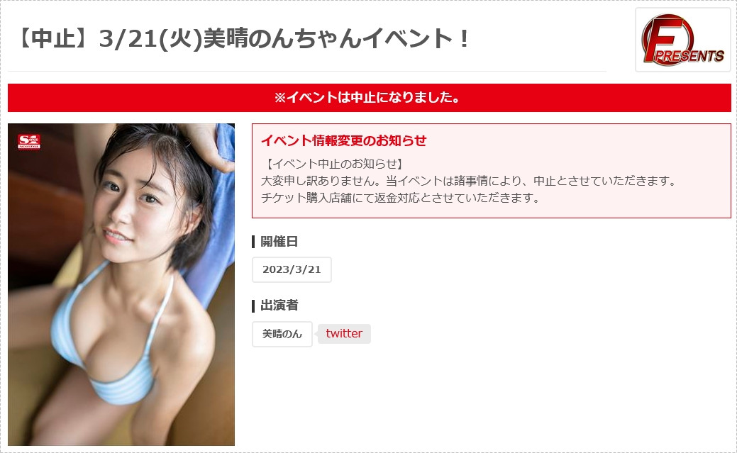 这已经有点怪怪的,但还没完喔,在宣布YouTube直播后的两天,也就是3月10日的时候,美晴のん(美暖暖)开开心心地在twitter宣布要举行出道以来第一次的实体活动,要在3月21日的时候和大家见面,然后ー
