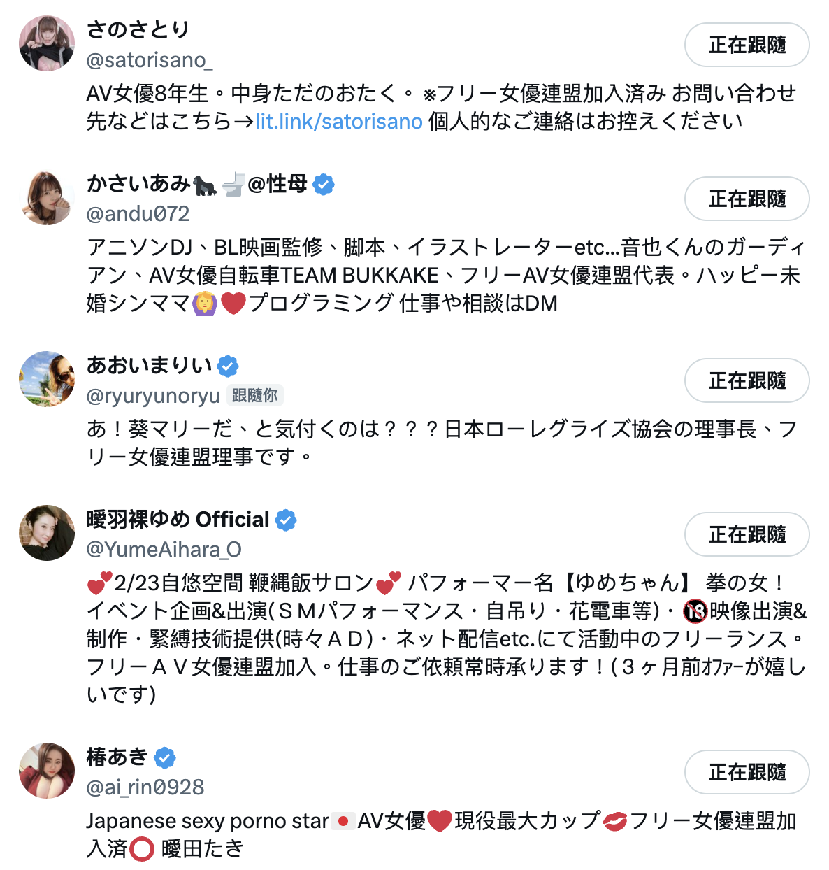 这也就是为什么フリー女優連盟(Free女优联盟)得以成立并且获得认可的原因,资历这么深的优秀女优不太会动了,然后到了这个资历还会再换经纪公司的女优大多没那么有影响力(就是没那么红了),要操作起来没那么容易ー在X上可以轻松搜到参加这个联盟的女优,包括かさいあみ(河西亚美)、さのさとり(佐野里莉)以及刚加入的真琴,她们都曾经辉煌,现在则大多什么都做,这样大家就懂这个自由同盟的女优是什么等级⋯